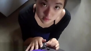 Hot Asian girlfriend sucking her boyfriends immense meaty cock
