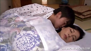 Passionate nailing in the bedroom with a natural tits Japanese girl