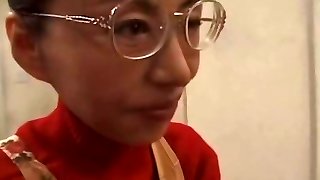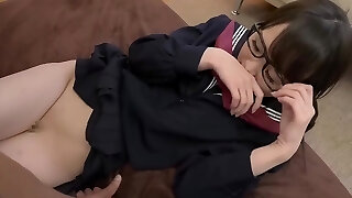 A pretty Japanese woman in stupid glasses is always well-prepped to spread her gams for her boyfriend.