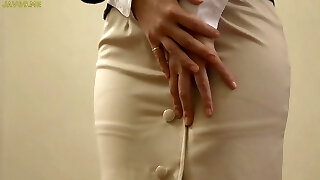 Japanese Milf maid in minidress gets her satin panties & rump fully exposed
