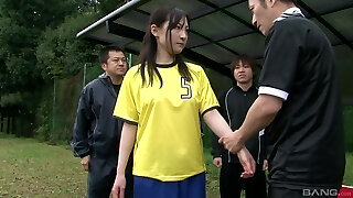 62:30Asiatische Fussballerinnen kuemmern sich nach dem Fitness um den Trainer