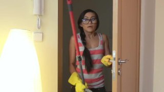 Hot Asian maid Jada Kai was caught stealing in motel bedroom and got big dick in her pussy for that